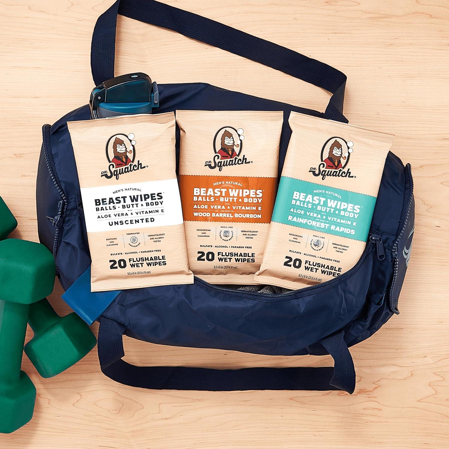 Dr. Squatch Beast Wipes – Flushable Adult Wipes for Men – Soothing and Refreshing – 2 Pack Unscented