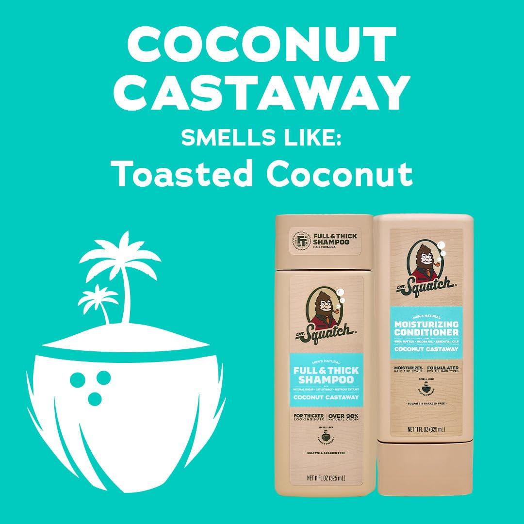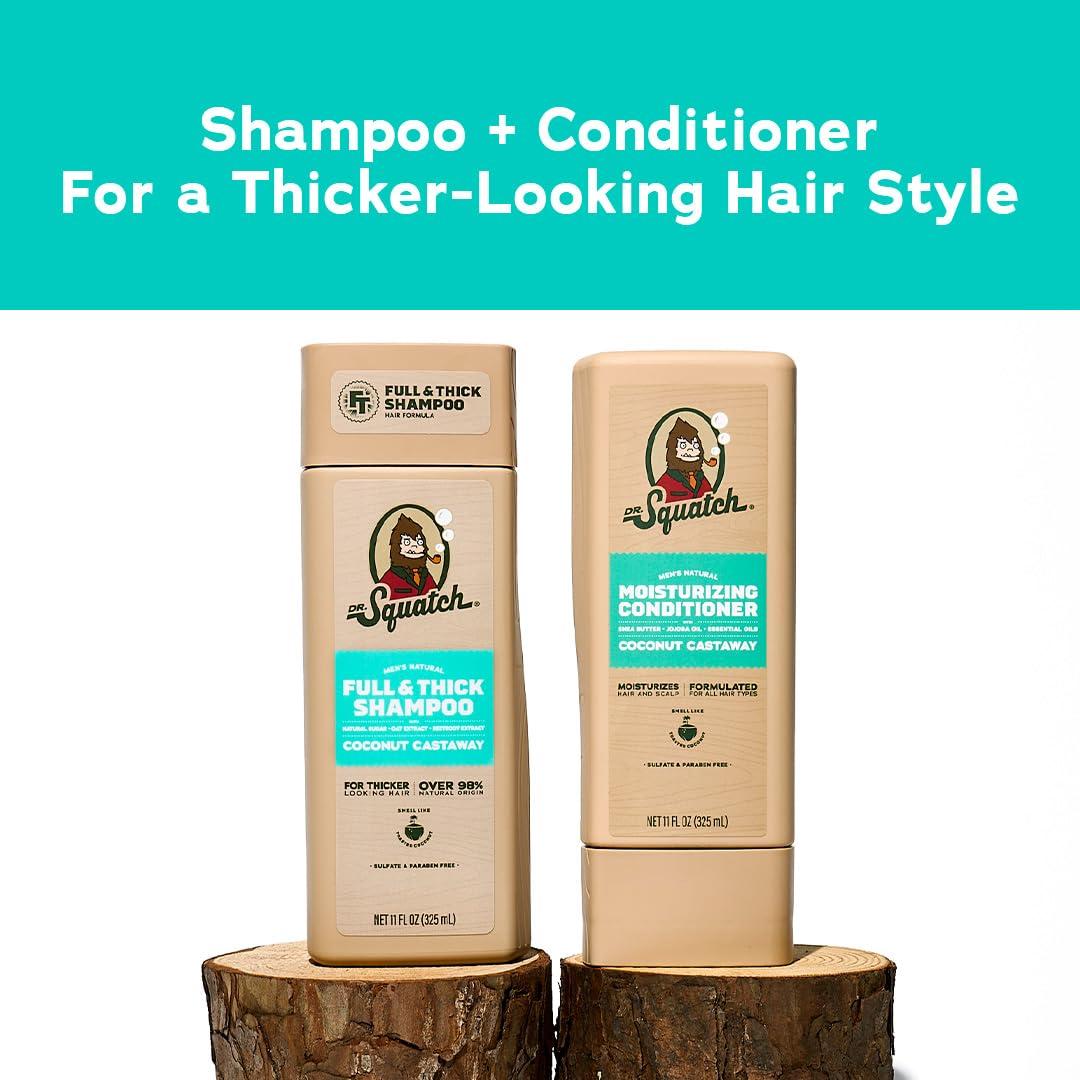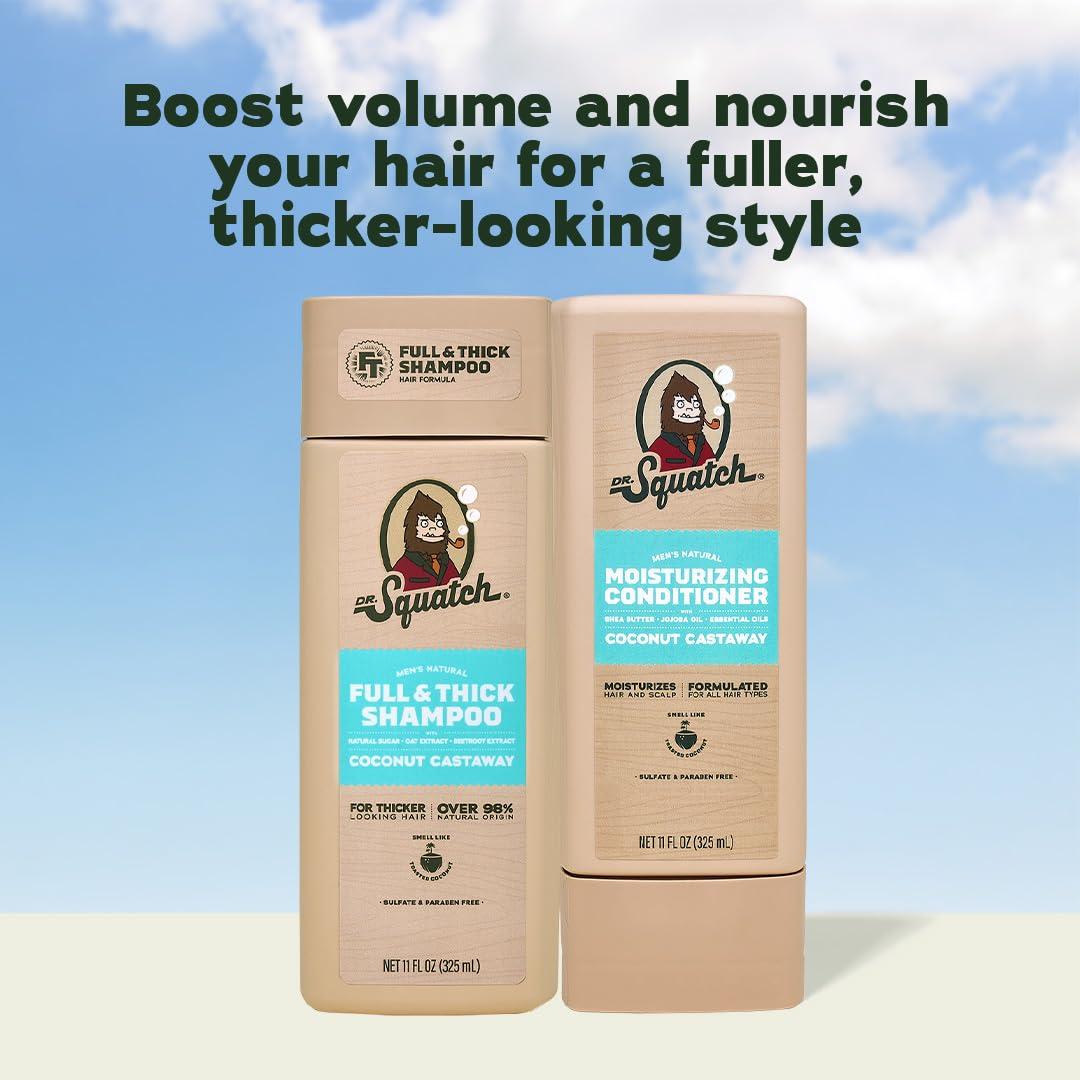 Dr. Squatch Full + Thick Men’s Shampoo and Conditioner Set – For Fuller, Thicker-Looking Hair – Natural Shampoo and Conditioner for Men – Coconut Castaway (11 fl oz, 2-Pack)(Full + Thick Coconut Castaway)