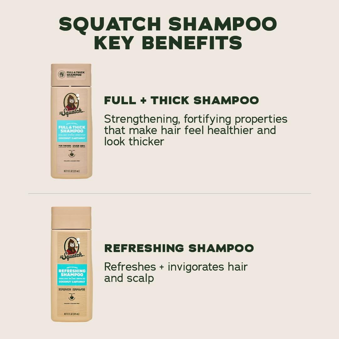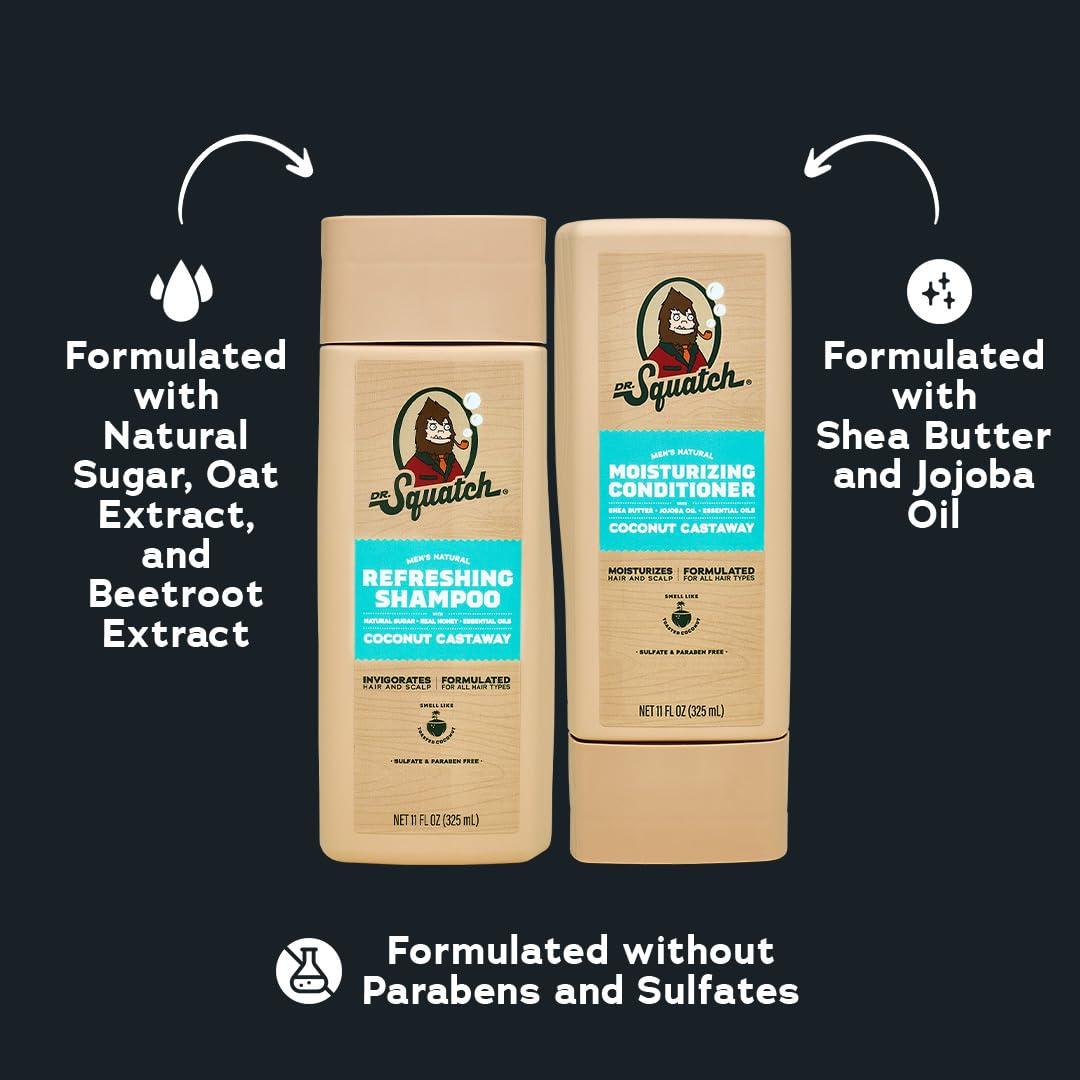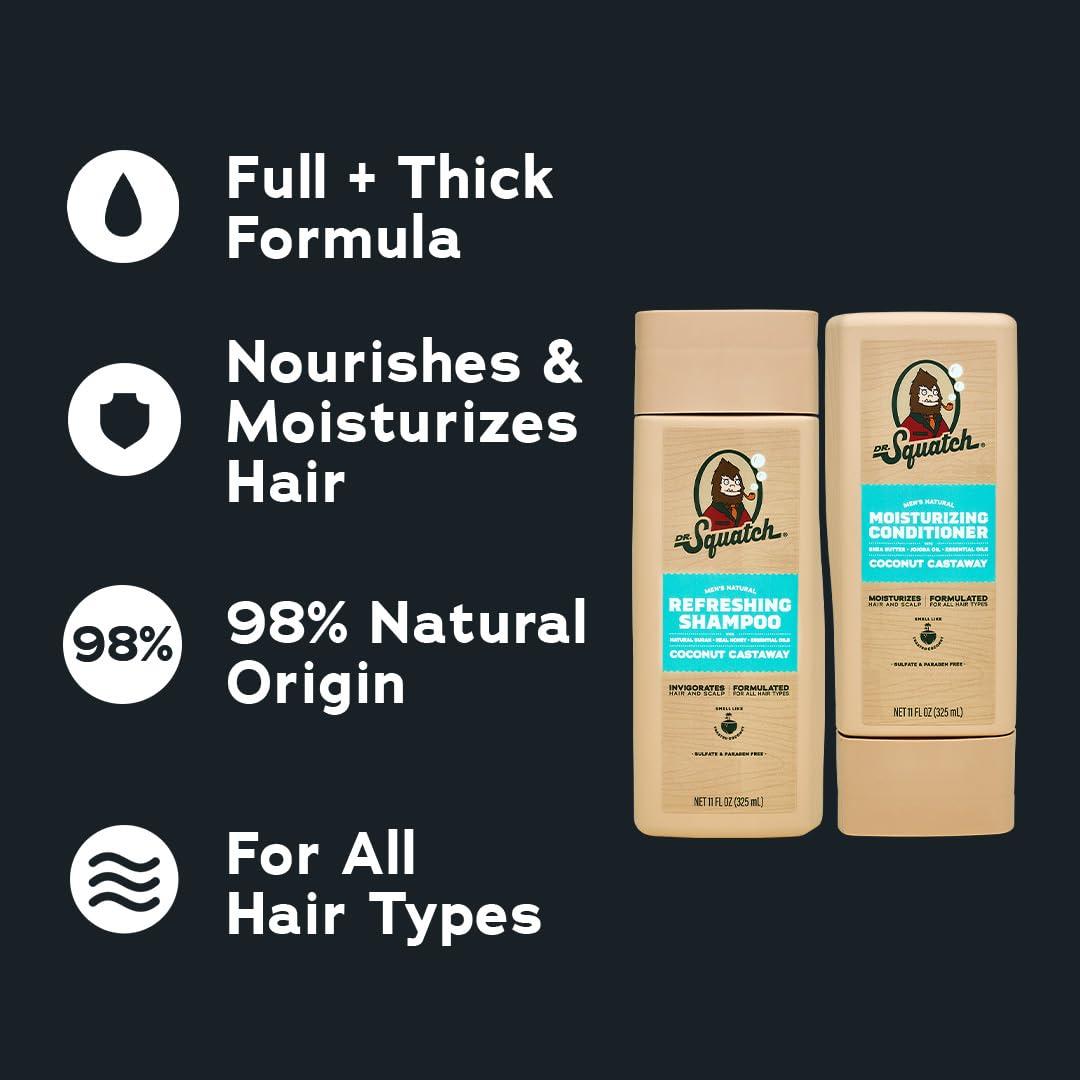 Dr. Squatch Full + Thick Men’s Shampoo and Conditioner Set – For Fuller, Thicker-Looking Hair – Natural Shampoo and Conditioner for Men – Coconut Castaway (11 fl oz, 2-Pack)(Full + Thick Coconut Castaway)
