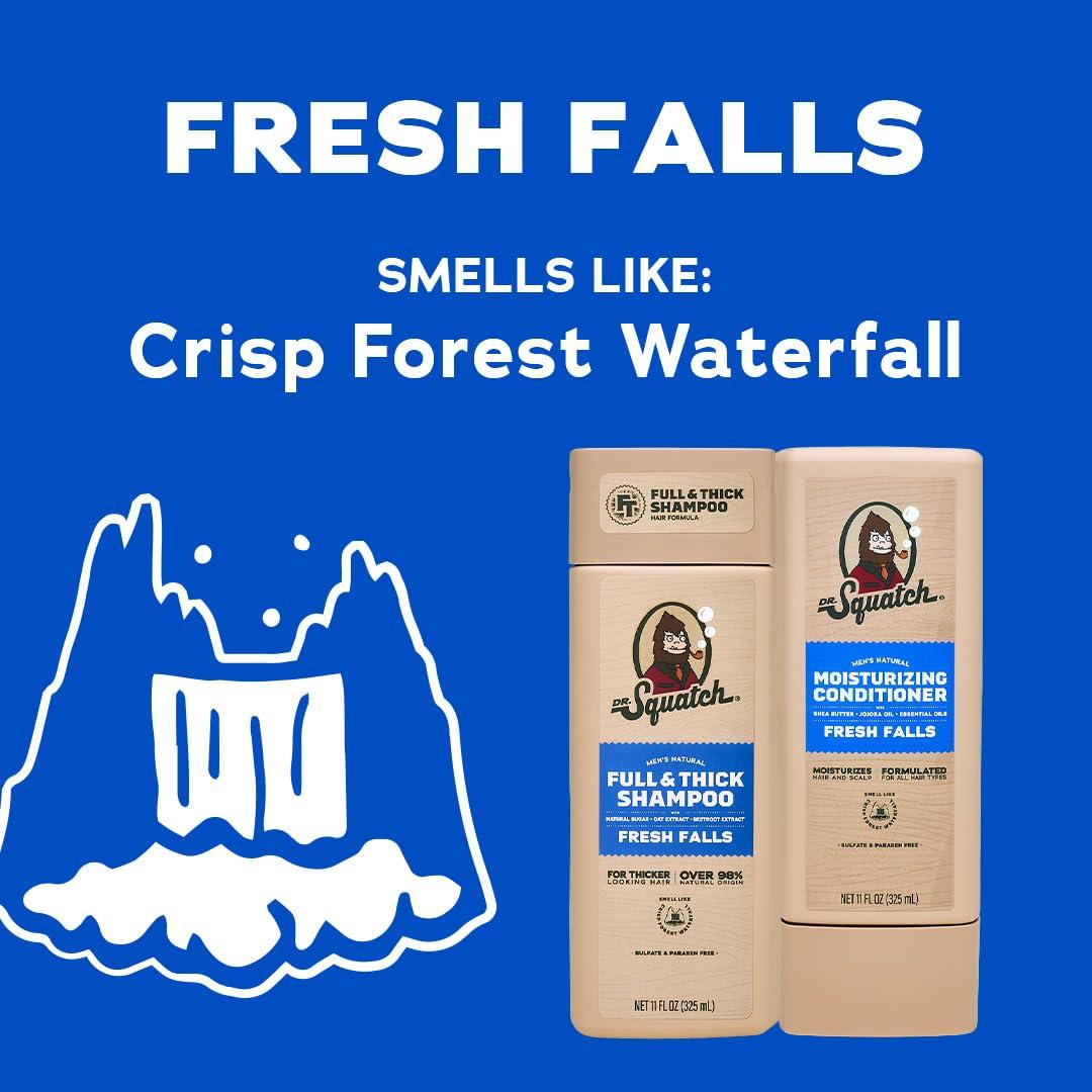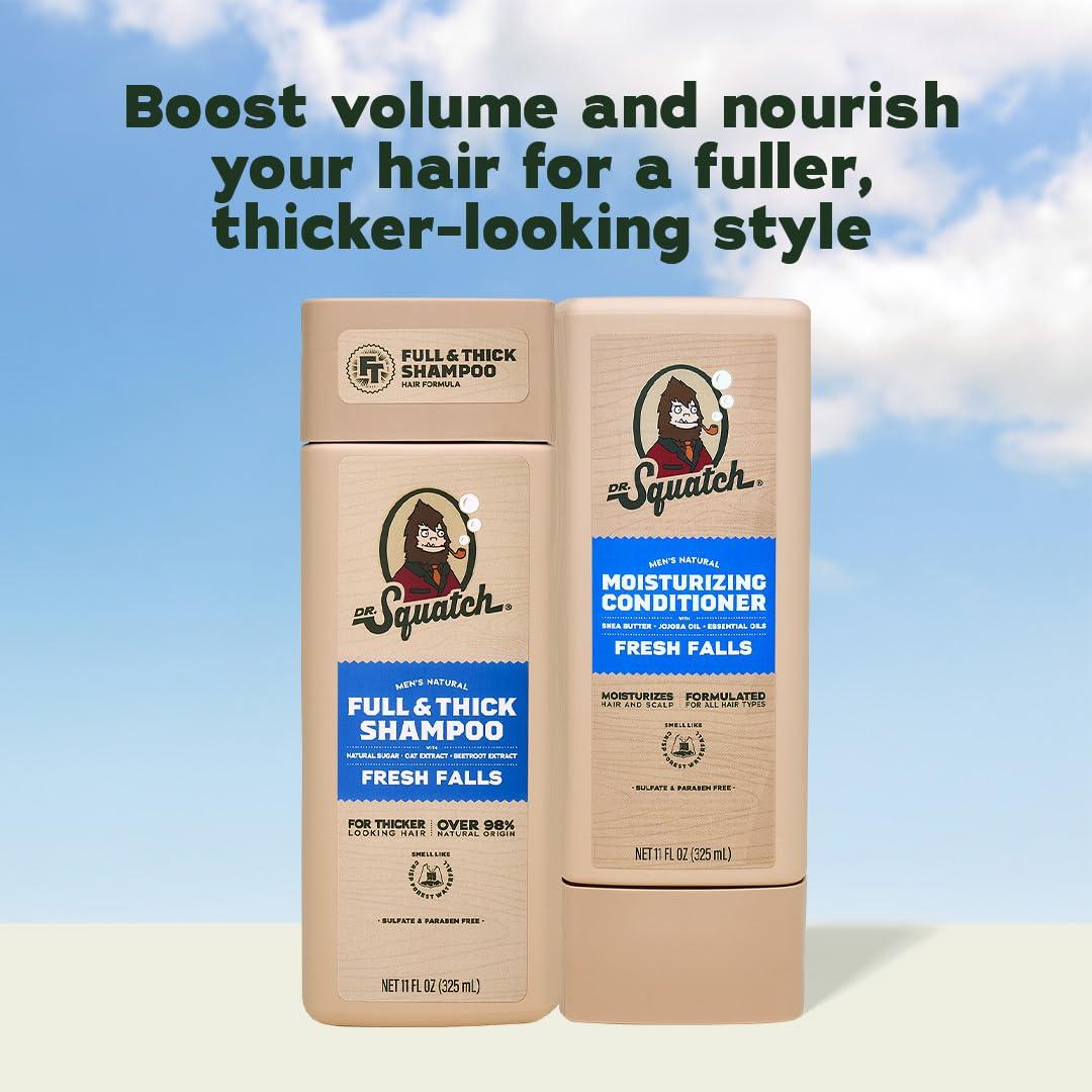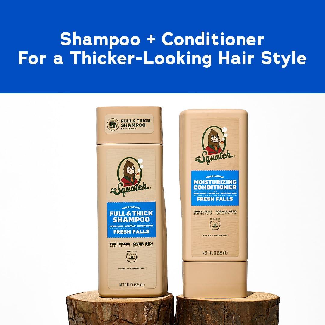 Dr. Squatch Full + Thick Men’s Shampoo and Conditioner Set – For Fuller, Thicker-Looking Hair – Natural Shampoo and Conditioner for Men – Coconut Castaway (11 fl oz, 2-Pack)(Full + Thick Fresh Falls)