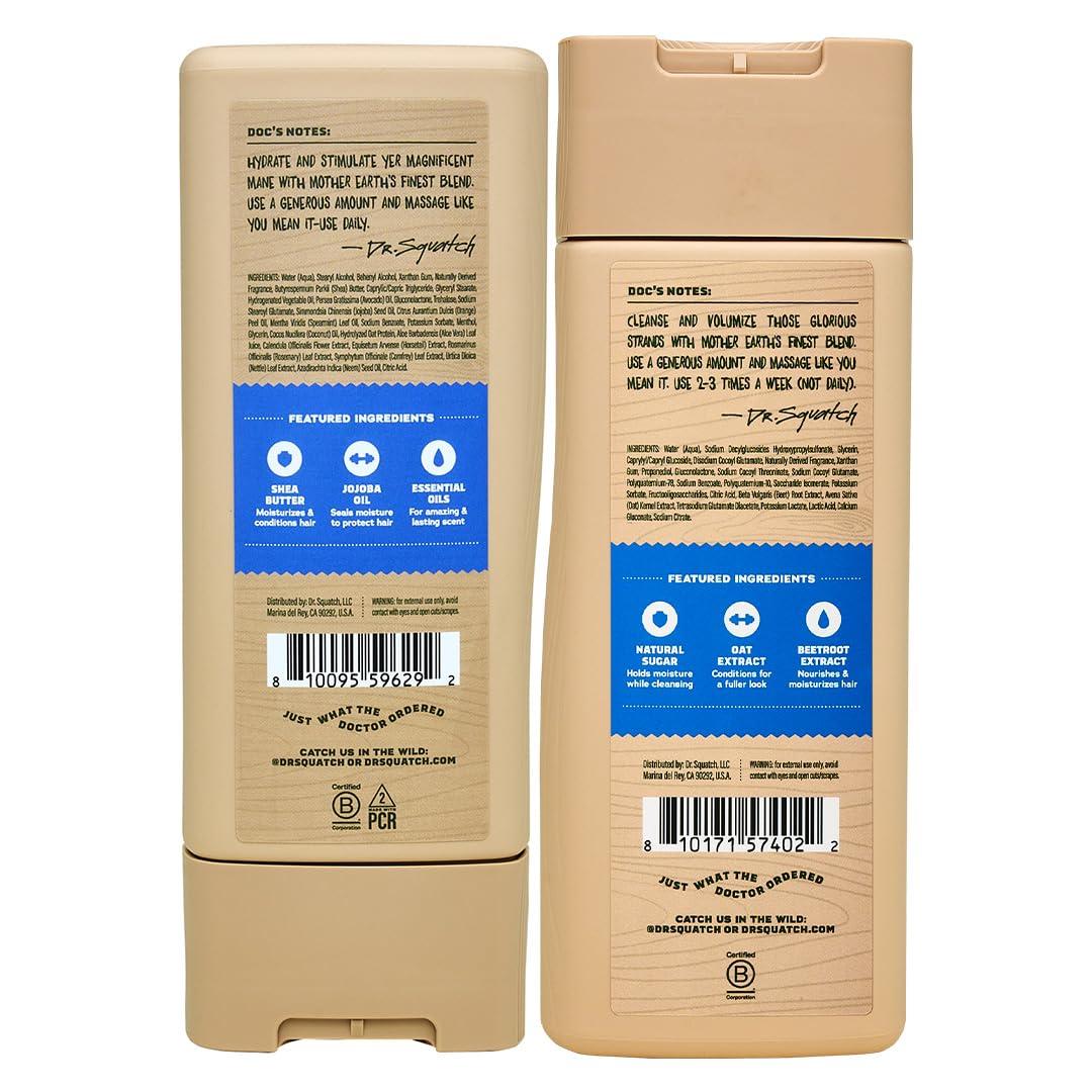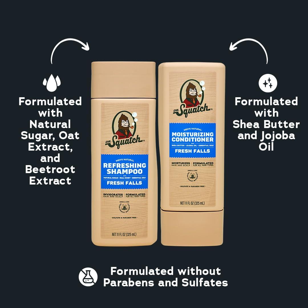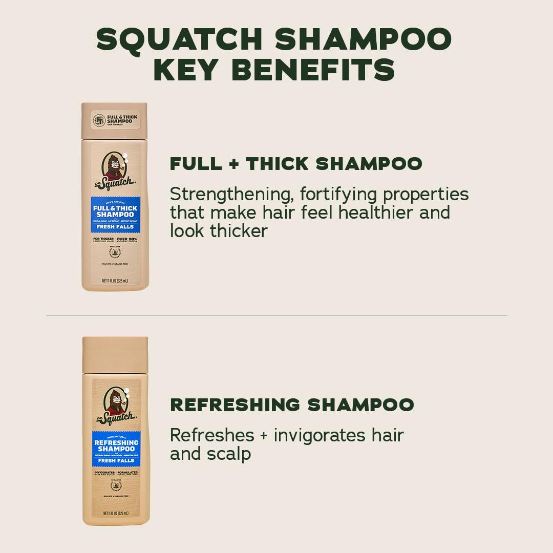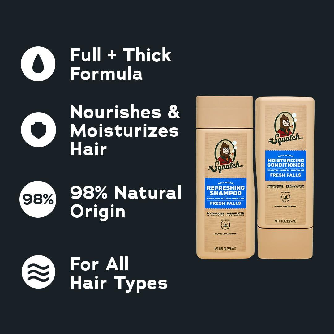 Dr. Squatch Full + Thick Men’s Shampoo and Conditioner Set – For Fuller, Thicker-Looking Hair – Natural Shampoo and Conditioner for Men – Coconut Castaway (11 fl oz, 2-Pack)(Full + Thick Fresh Falls)