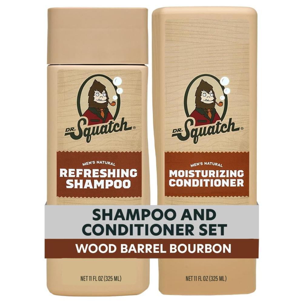 Dr. Squatch Full + Thick Men’s Shampoo and Conditioner Set – For Fuller, Thicker-Looking Hair – Natural Shampoo and Conditioner for Men – Coconut Castaway (11 fl oz, 2-Pack)(Wood Barrel Bourbon)