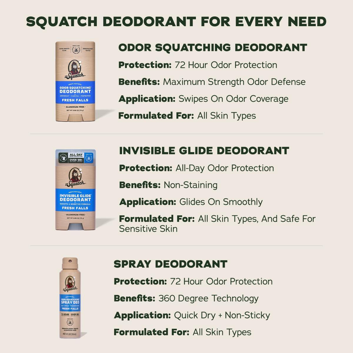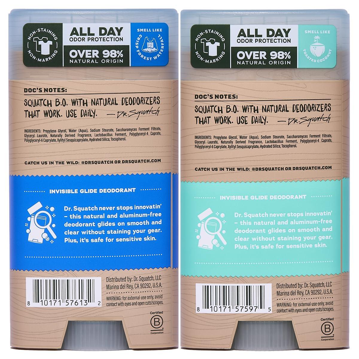 NO STAINS, NO STREAK: Dr. Squatch 2-Pack Invisible Glide Deodorant goes on smooth and stays invisible. No marks, no residue, and no stains on your favorite shirts. Just clean, all-day freshness