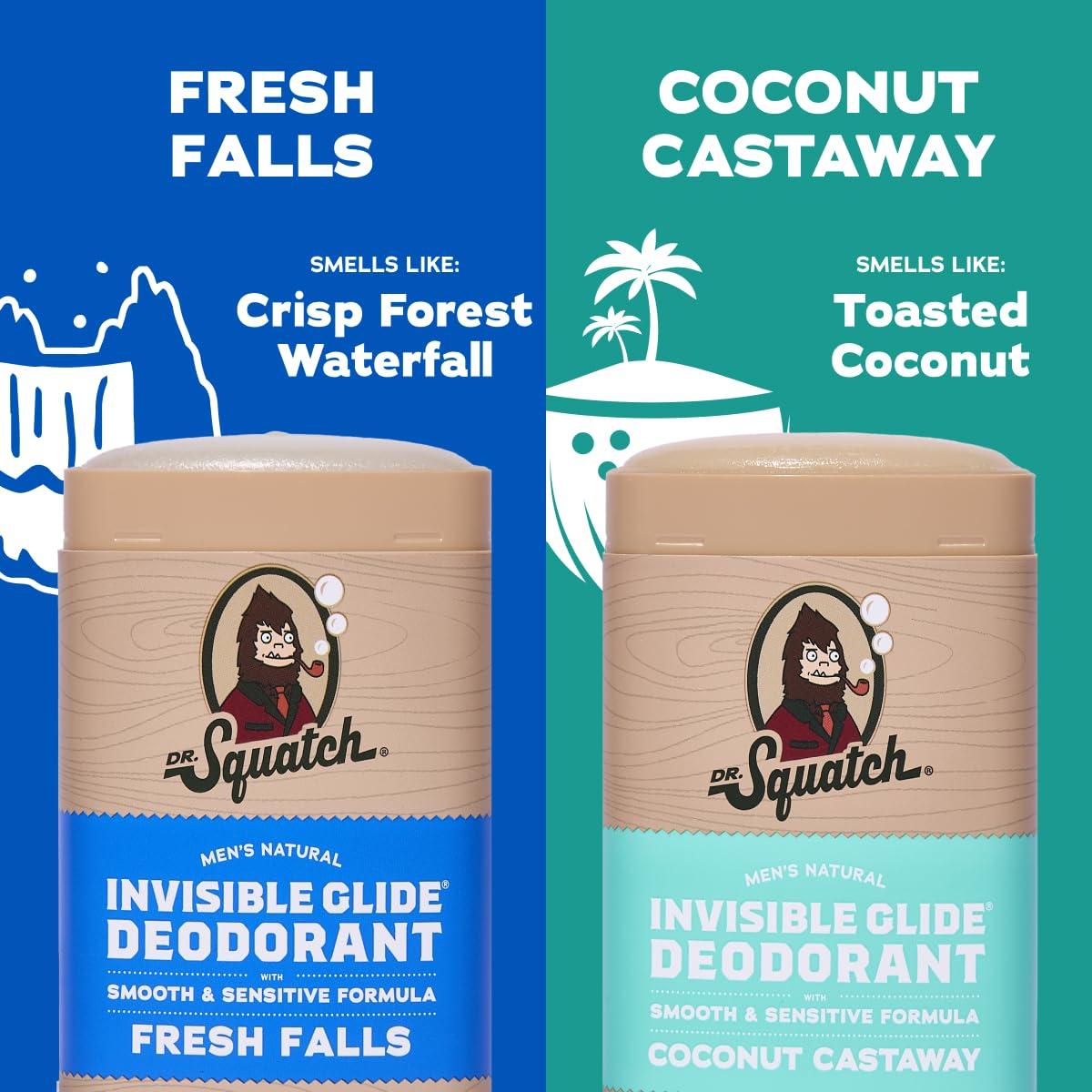 Dr. Squatch Invisible Glide Natural Men’s Deodorant – Smooth Glide, No Stains – Aluminum Free Deodorant Men – Safe for Sensitive Skin – Coconut Castaway + Rainforest Rapids, 2.65oz (2-Pack)(Coconut Breeze)