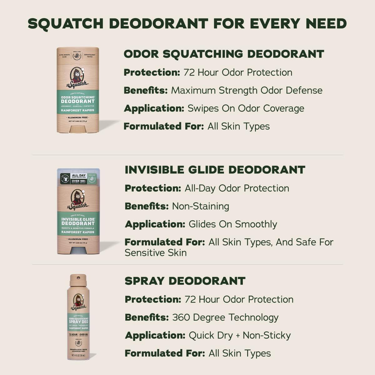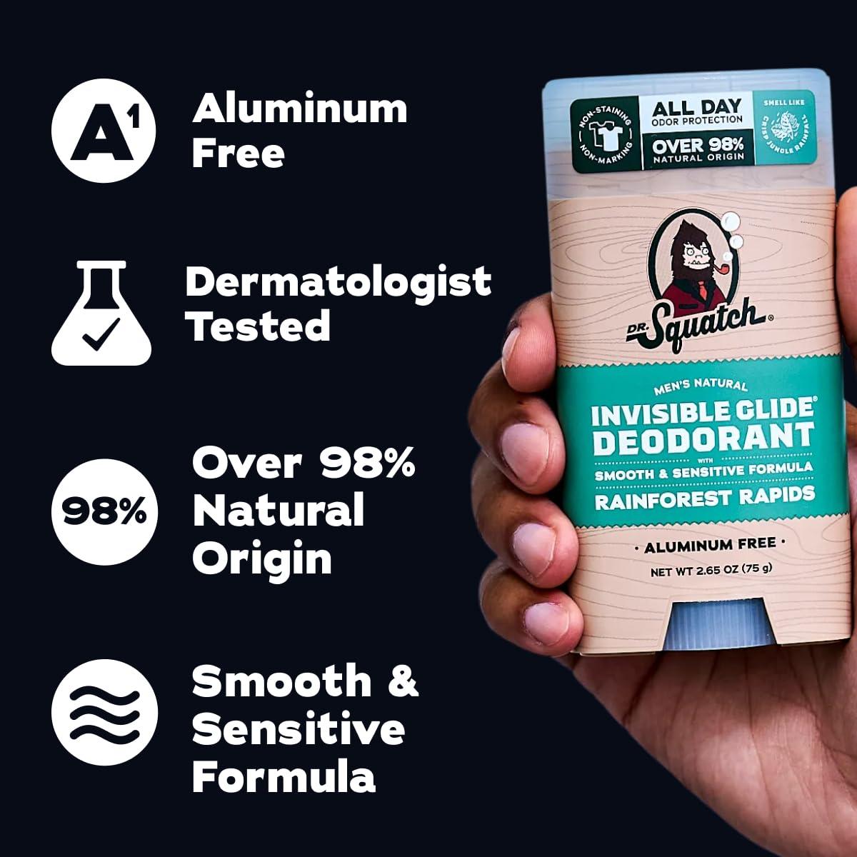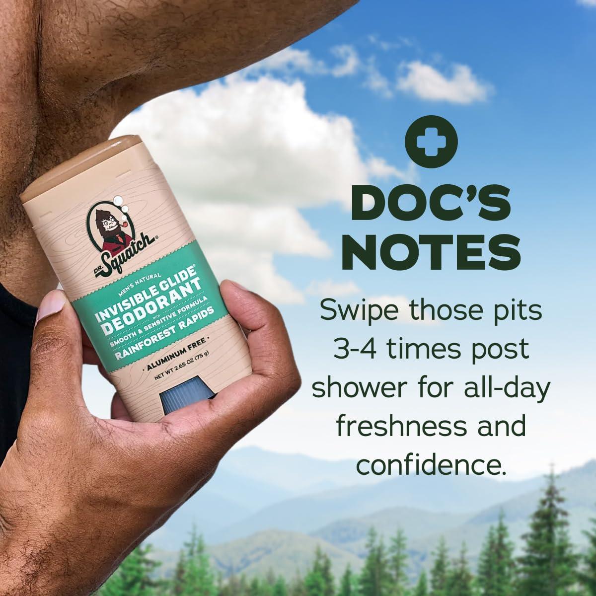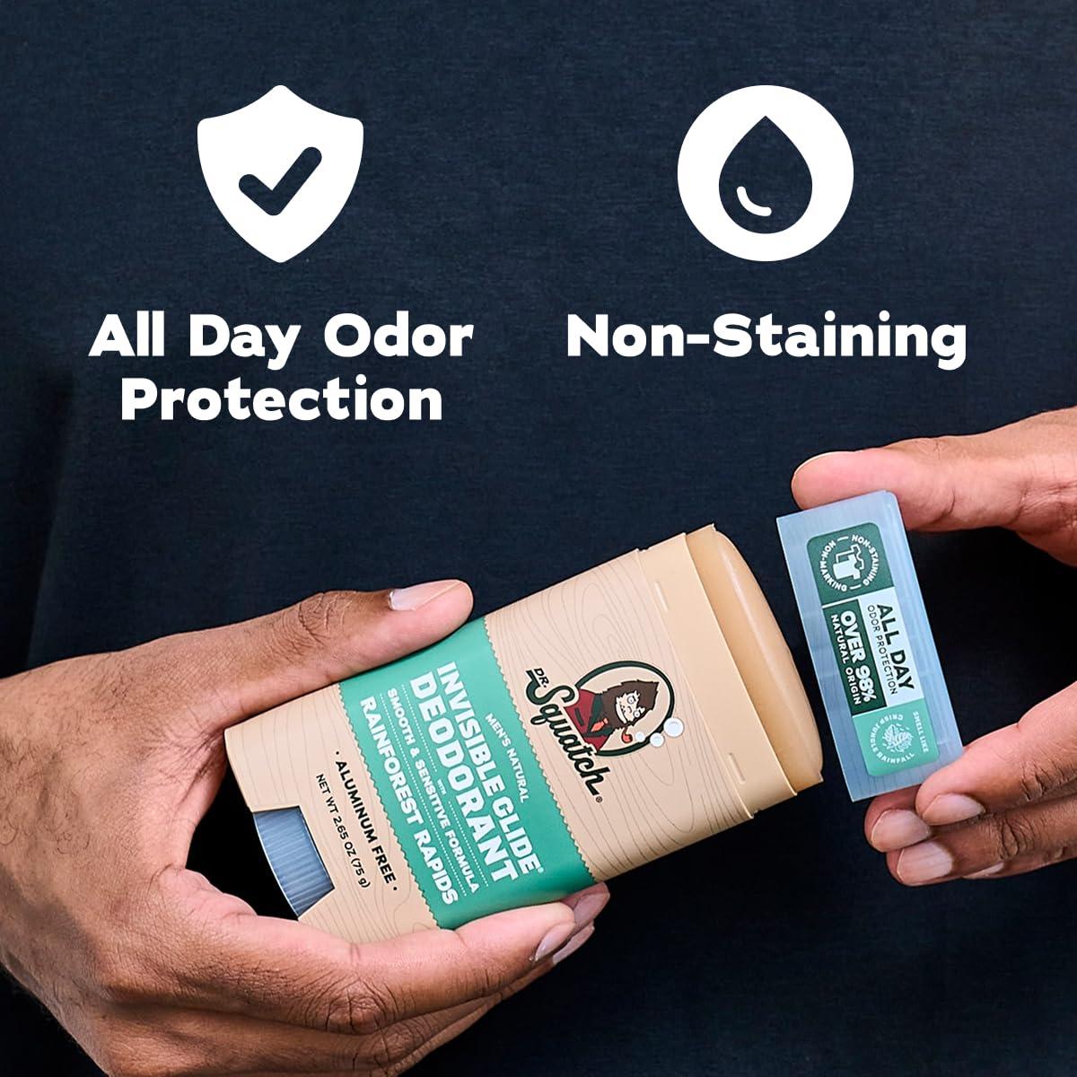 NO STAINS, NO STREAK: Dr. Squatch 2-Pack Invisible Glide Deodorant goes on smooth and stays invisible. No marks, no residue, and no stains on your favorite shirts. Just clean, all-day freshness