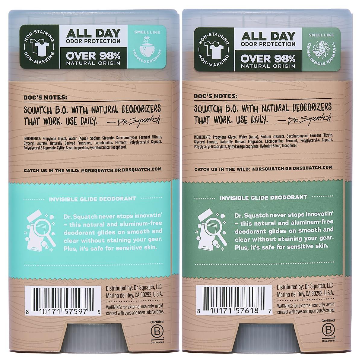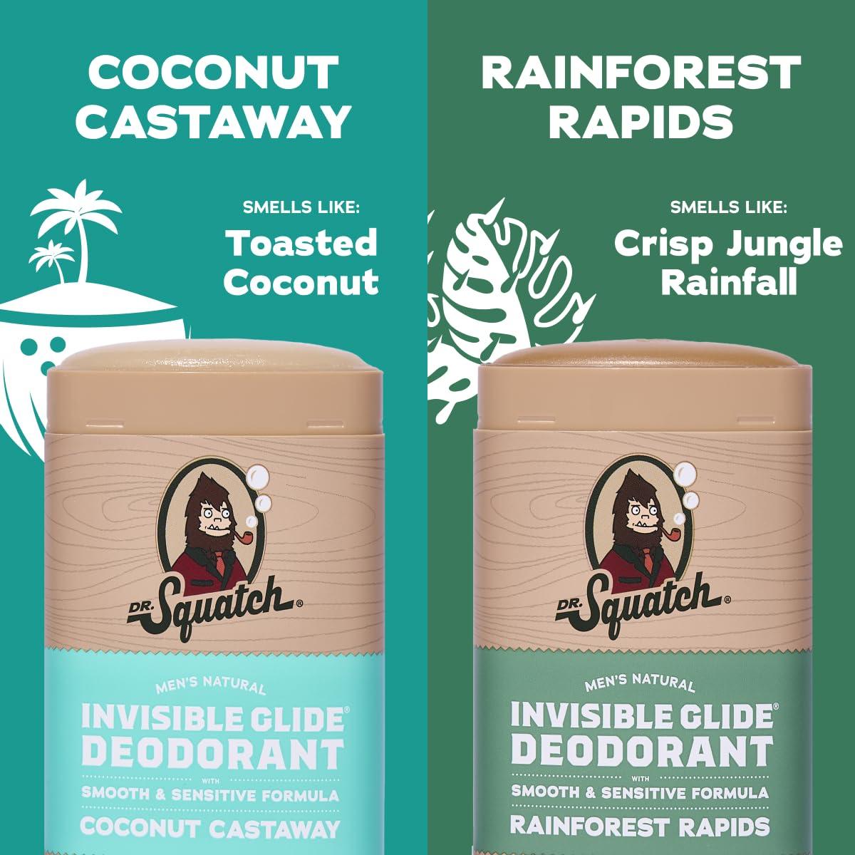 Dr. Squatch Invisible Glide Natural Men’s Deodorant – Smooth Glide, No Stains – Aluminum Free Deodorant Men – Safe for Sensitive Skin – Coconut Castaway + Rainforest Rapids, 2.65oz (2-Pack)(Tropical Canopy)