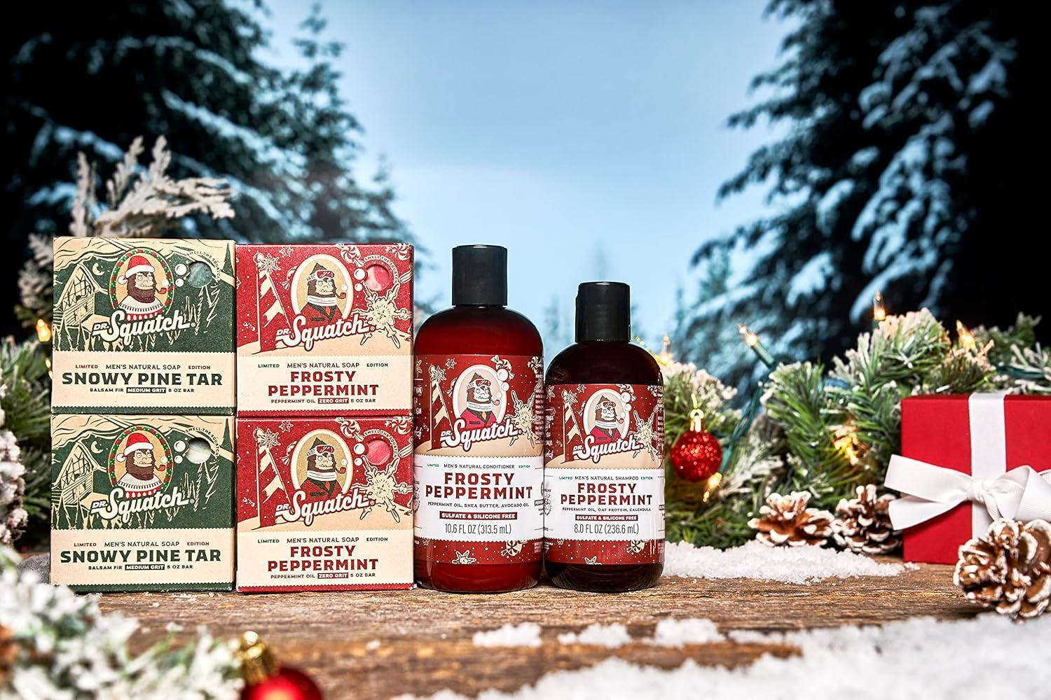 Dr. Squatch Men’s Natural Soap and Hair Care – Snowy Pine Tar and Frosty Peppermint Shampoo and Conditioner – Blizzard Expanded Pack – Limited Edition Holiday Bundle(Snowy Pine/Frosty Pepermint)
