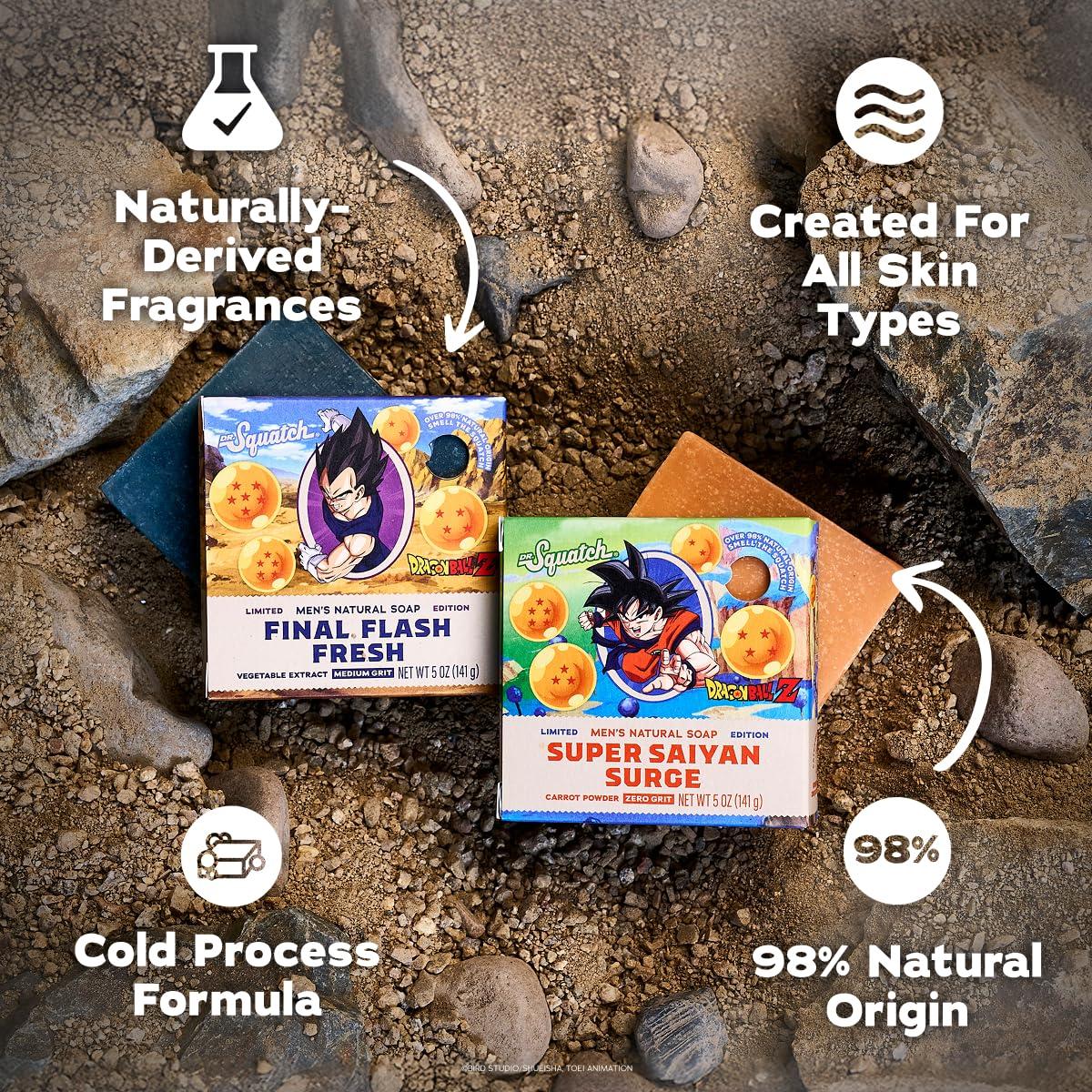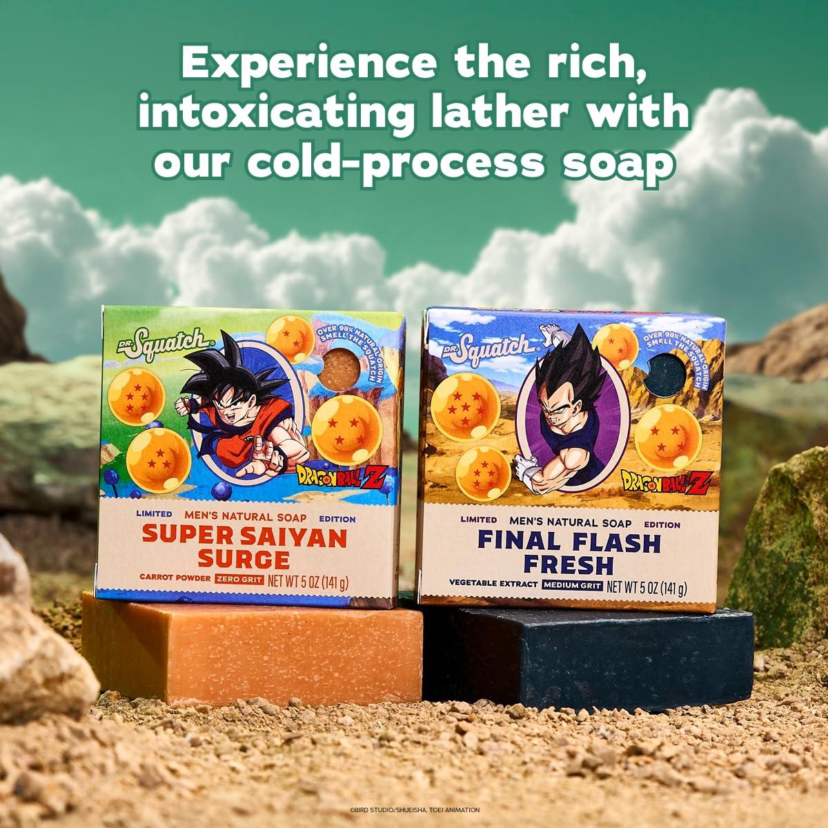Dr. Squatch Natural Men’s Bar Soap – Limited Edition Dragon Ball Z Gifts for Men – Natural Cold Process Soap Bar – Super Saiyan Surge + Final Flash Fresh (5 oz, 4-Pack)