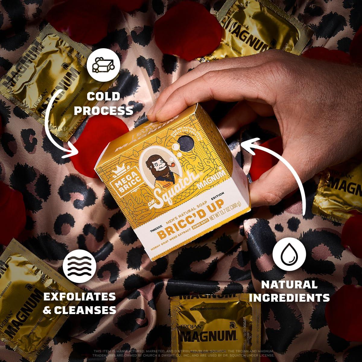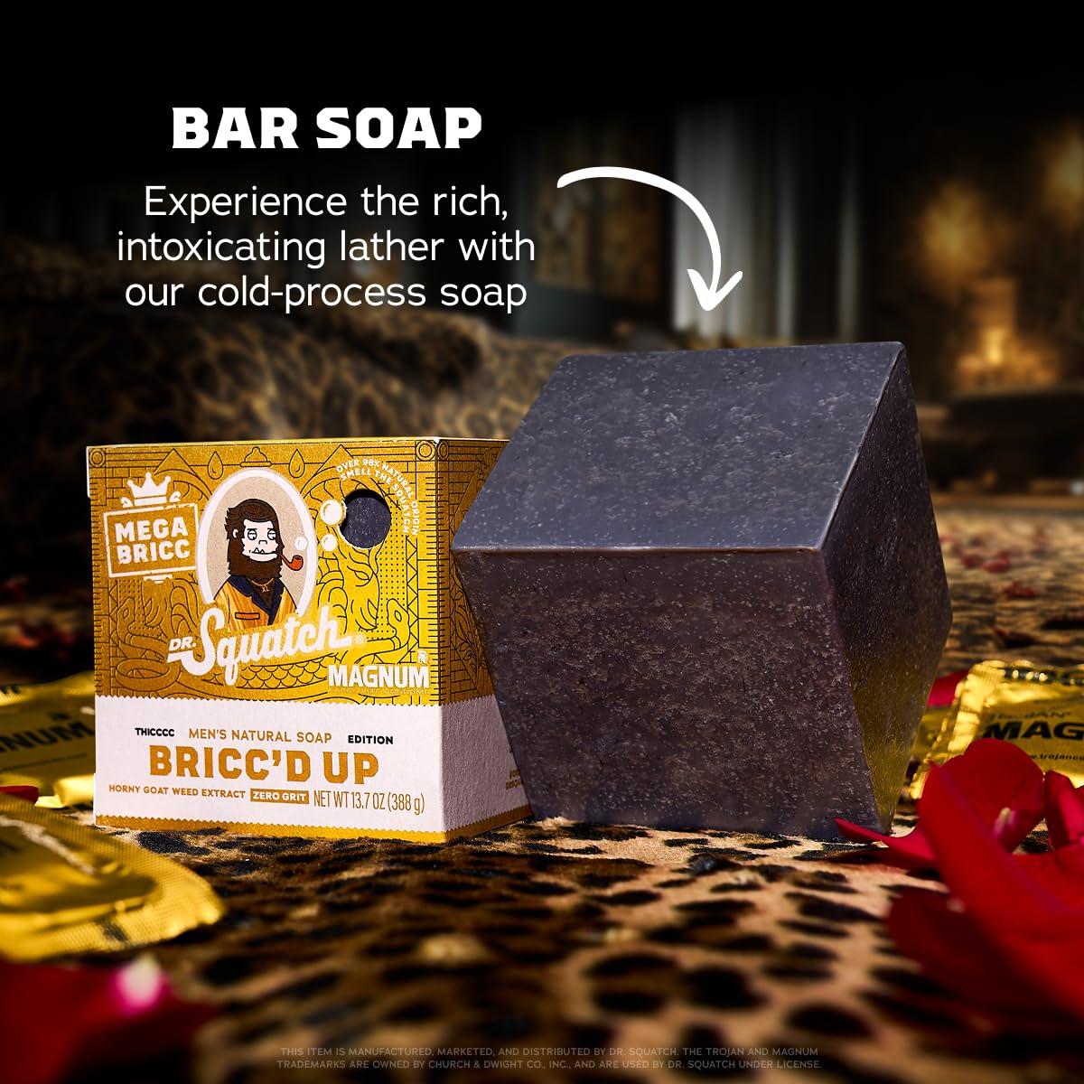 Dr. Squatch Natural Men’s Bar Soap – Limited Edition Trojan Gifts for Men – Natural Cold Process Soap Bar – Bricc’d Up (5 oz) + Magnum Bricc (13.7 oz) 4-Pack(Trojan)